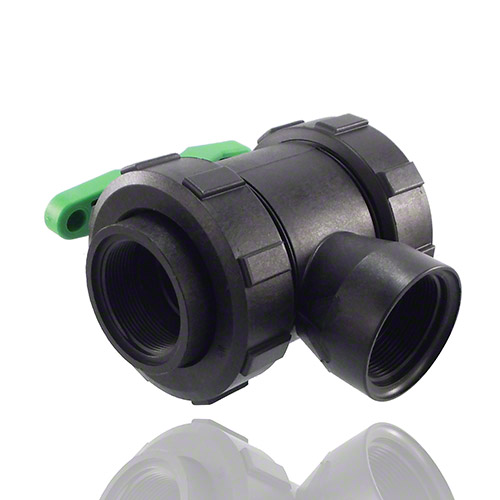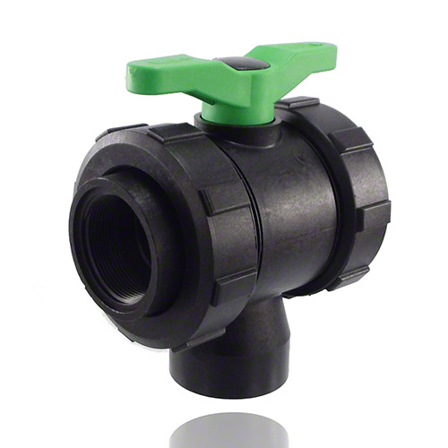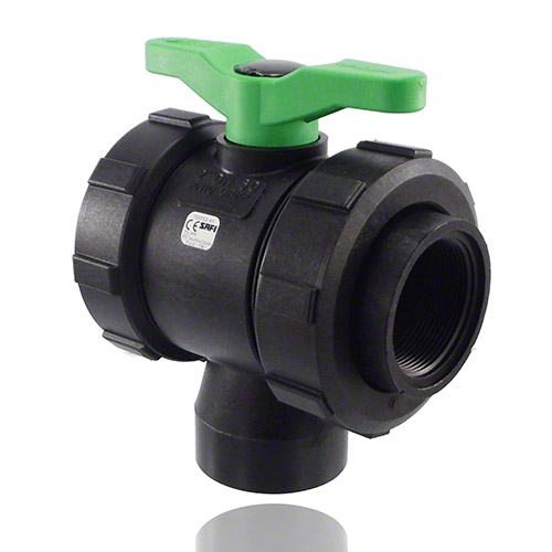 3-ways ball valve PPGF, female thread, FPM = green handle
