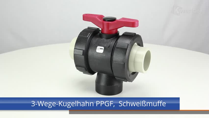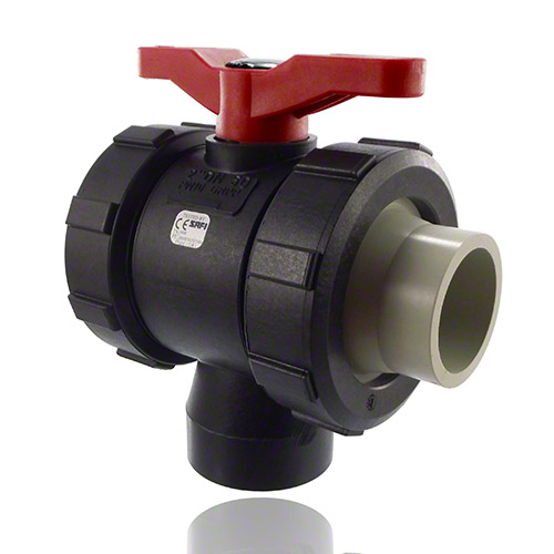 3-ways ball valve PPGF, PP-nozzles, EPDM = red handle