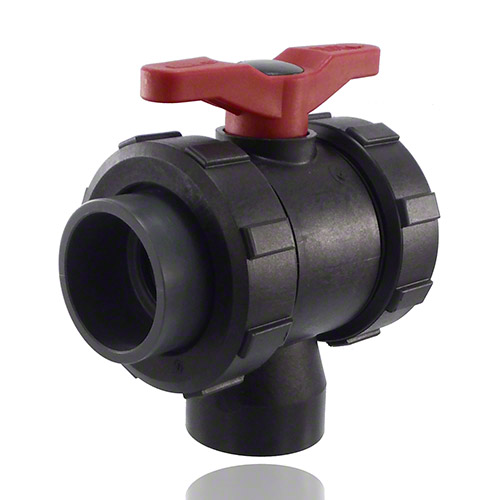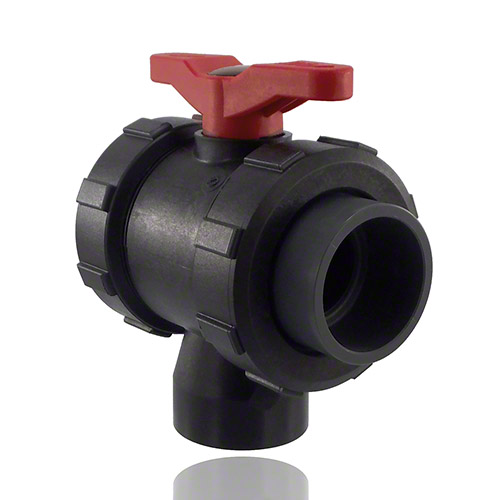 3-ways ball valve PPGF, PVC-U-gluing sleeves, EPDM = red handle