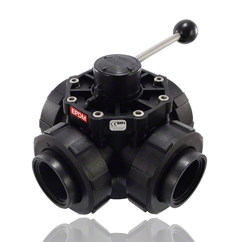 4-ways ball valve PPGF DN 50, R-female thread, T-bore, EPDM