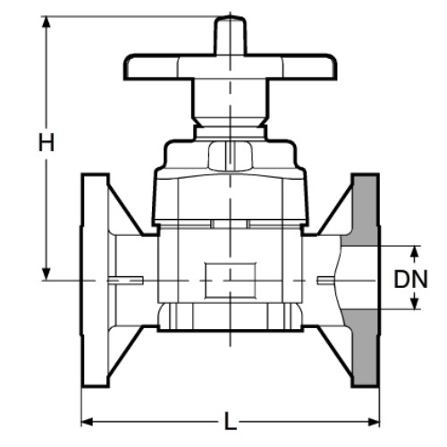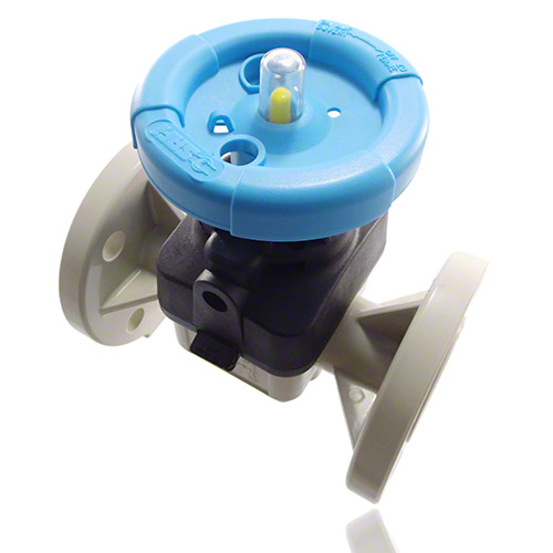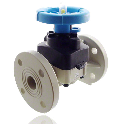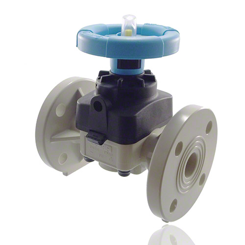 diaphragm valve PP-H, DIN-flanges, FPM = green handle