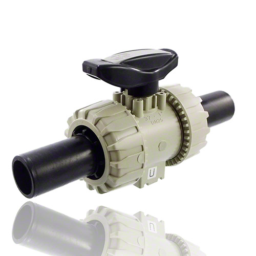 - 2-way True Union ball valve with locked carrier and lockable union nuts. - Size range DN 10 ÷ 50 - Nominal pressure PN 10 with water at 20° C - Temperature range 0 °C ÷ 100 °C Coupling standards - Welding: EN ISO 15494. Can be coupled to pipes according to EN ISO 15494 - Thread: ISO 228-1, DIN 2999 - Flanging system: ISO 7005-1, EN 1092-1, EN ISO 15494, EN 558-1, DIN 2501, ANSI B16.5 cl.150 Reference standards - Construction criteria: EN ISO 16135, EN ISO 15494 - Test methods and requirements: ISO 9393 - Installation criteria: DVS 2202-1, DVS 2207-11, DVS 2208-1, UNI 11318 - Actuator couplings: ISO 5211 - Valve material PP-H - Seal material EPDM, FPM (standard size O-Rings); PTFE (ball seats) - Control optionsManual control; electric actuator; pneumatic actuator |