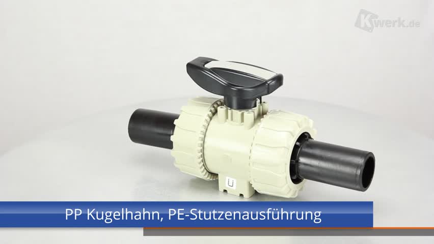 PP 2-Way Ball Valve with PE100 SDR 11 male end connectors for butt welding or electrofusion, FPM