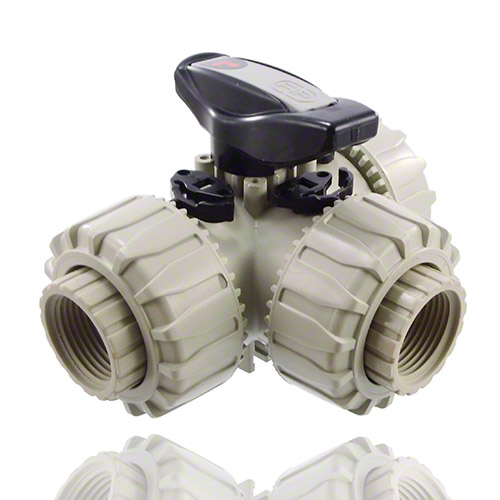 PP 3-Way Ball Valve with BSP threaded female ends, T-port ball, FPM