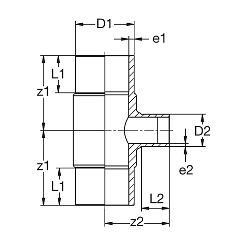 Injection molded parts, for butt welding and heating coil welding (long version only); without weakening factors. material PP-RCT (Polypropylene Random-Copolymer Temperature resistant) with modified crystal structure (beta nucleated) and increased temperature resistance, Borealis RA7050GN, color RAL 6024 traffic green. The material meets the requirements of the current KTW guidelines of the Federal Environment Agency (UBA). Geometric properties Outside diameter and wall thickness in accordance with DIN EN ISO 15874. Tolerances in the Z dimension specifications depend on the dimension. Up to d / D 160 = +/- 3 mm. From d / D 180 = +/- 10 mm. operating pressure The operating pressure depends on the SDR class and the pipe used. execution Suitable for heating element butt welding and heating coil socket welding in accordance with DVS guideline 2207. Welding equipment and welding tools should comply with DVS guideline 2208. Certification B-R molded parts are subject to regular internal and external quality controls. The molded parts meet the requirements of DIN Certco guidelines ZP 10.25.1 and NSF14 + 61 |