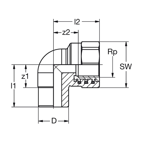 PP-RCT-RG adapter elbow 90° i female thread-cylindric green