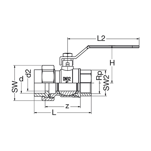 PP-RCT adapter ball valve-brass female thread-cylindric union connection w/ o-ring-EPDM green