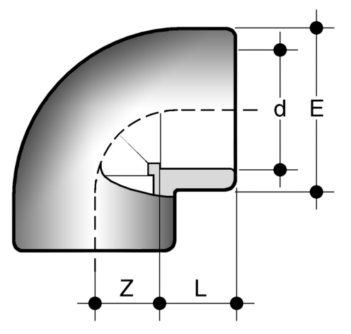 | - 90° elbow with solvent weld sockets |