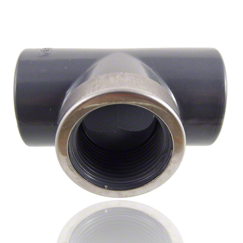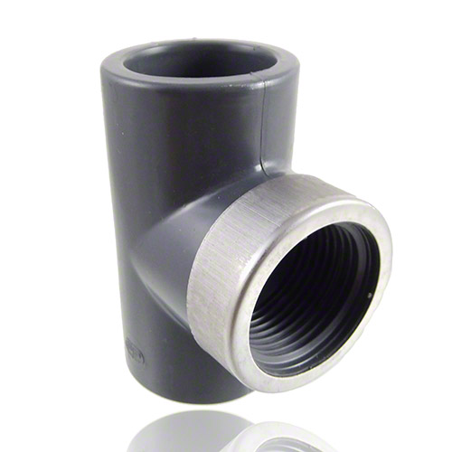 PVC-U Tee 90°, socket - threaded female, with stainless steel reinforcing ring