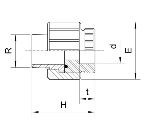 - Adaptor union in PVC-U/stainless steel with solvent weld socket d and BSP threaded A316L stainless steel male end R with O-Ring in EPDM