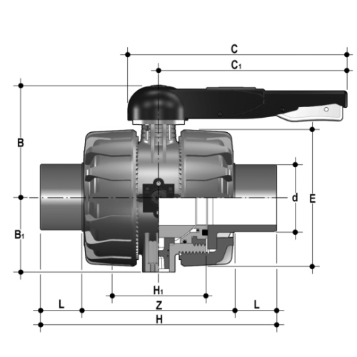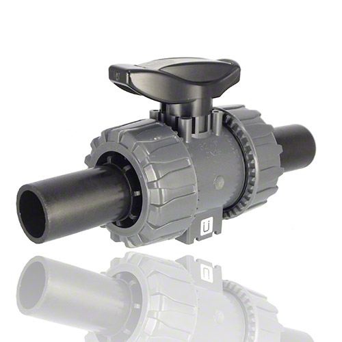 PVC-U 2-Way ball valve with PE100 SDR 11 male end connectors, EPDM