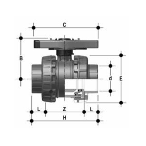 PVC-U  2-Way ball valve, Easyfit/VXE d 75 - d 110 mm, female ends for solvent welding, FPM