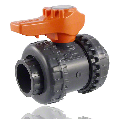 PVC-U 2-Way ball valve, Easyfit/VXE, female ends for solvent welding, FPM