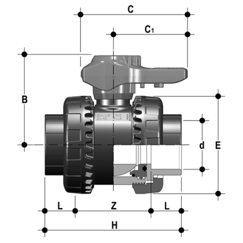 | - Easyfit 2-way ball valve with female ends for solvent welding, metric series - O-Ring FPM |