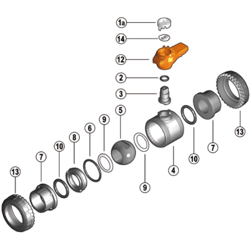 | - Easyfit 2-way ball valve with threaded female ends for solvent welding, metric series - O-Ring EPDM |
