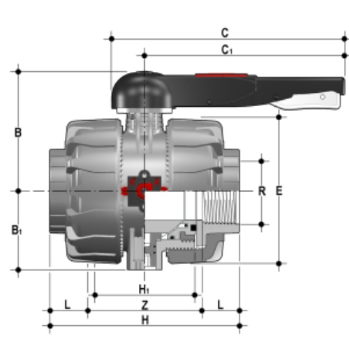 PVC-U 2-Way ball valve with BSP threaded female ends, FPM