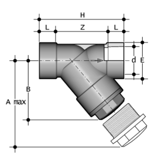 PVC-U Sediment strainer with female ends for solvent welding, EPDM