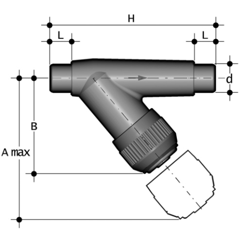 PVC-U Sediment strainer with male ends for solvent welding, FPM