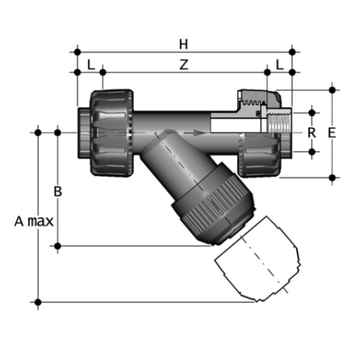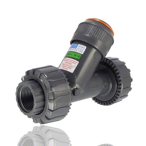 PVC-U Sediment strainer with BSP threaded female union ends, EPDM