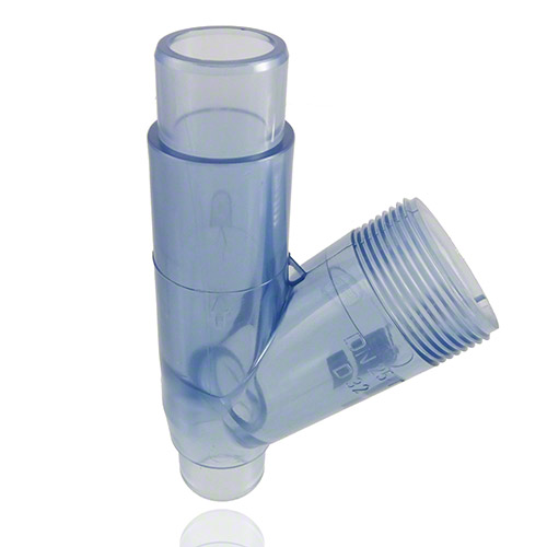PVC-U transparent Sediment strainer with male ends for solvent welding, EPDM