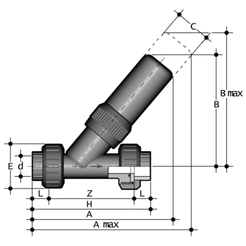 PVC-U Angle seat Relief Valve, PE100 SDR 11 male union end, EPDM