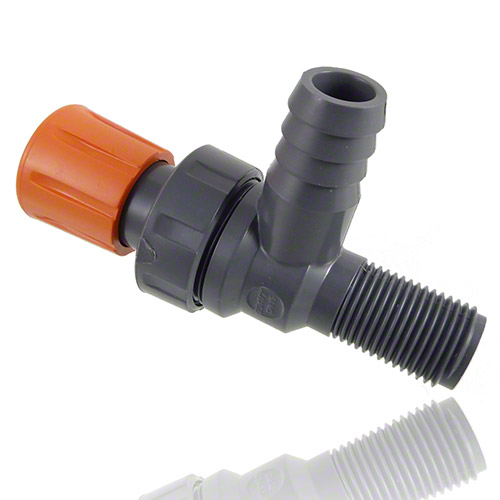 PVC-U Diaphragm cock valve with BSP threaded male ends and hose connection, EPDM