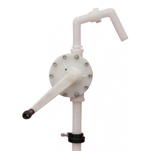 | Suitable for thin-bodied, very aggressive media such as acids and alkalis. The hand pump is supplied complete with discharge bend and barrel screw connection G 2". Regular lubrication necessary. - Pump material: PVDF - Seals: PTFE - Delivery rate: max. 0.3 l/revolution - Immersion tube length: 3 x 35 cm |
