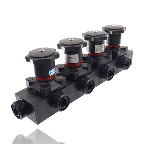 Multi-way valve in block construction It is possible to equip the block with pneumatic or manual hand wheels accordingly. Possible holes for the introduction of measuring points, such. PH, REDOX or temperature are possible. The connections can be shown as threads, flanges or in other versions. Customer benefits - Customized plant design - Extremely compact valve solution - Shorter installation times - System integration possible - Increased plant reliability thanks to fewer connection points Technical data - Produced from a single block of material; standard materials PVC-U, PP, PE, PP natural, PVDF, further materials on request - Standard connections, such as threaded sockets, solvent cement spigots, butt weld spigots, union ends and flanges, can be used |