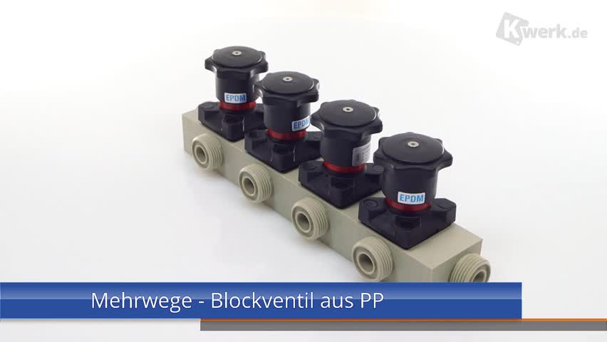 Multi-way valve in block construction It is possible to equip the block with pneumatic or manual hand wheels accordingly. Possible holes for the introduction of measuring points, such. PH, REDOX or temperature are possible. The connections can be shown as threads, flanges or in other versions. Customer benefits - Customized plant design - Extremely compact valve solution - Shorter installation times - System integration possible - Increased plant reliability thanks to fewer connection points Technical data - Produced from a single block of material; standard materials PVC-U, PP, PE, PP natural, PVDF, further materials on request - Standard connections, such as threaded sockets, solvent cement spigots, butt weld spigots, union ends and flanges, can be used |