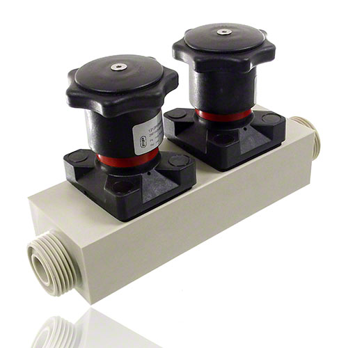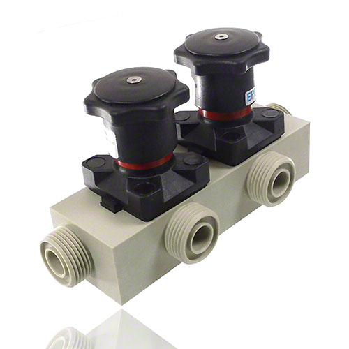 Multiway Valve made of PP with two handwheels, valve is reduced, Diaphragm PTFE