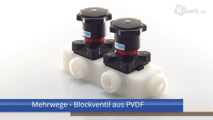 Multi-way valve in block construction It is possible to equip the block with pneumatic or manual hand wheels accordingly. Possible holes for the introduction of measuring points, such. PH, REDOX or temperature are possible. The connections can be shown as threads, flanges or in other versions. Customer benefits - Customized plant design - Extremely compact valve solution - Shorter installation times - System integration possible - Increased plant reliability thanks to fewer connection points Technical data - Produced from a single block of material; standard materials PVC-U, PP, PE, PP natural, PVDF, further materials on request - Standard connections, such as threaded sockets, solvent cement spigots, butt weld spigots, union ends and flanges, can be used |