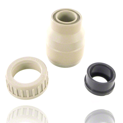 - other side PP union nut with PVC U inlay adhesive sleeve and EPDM O-ring sealing